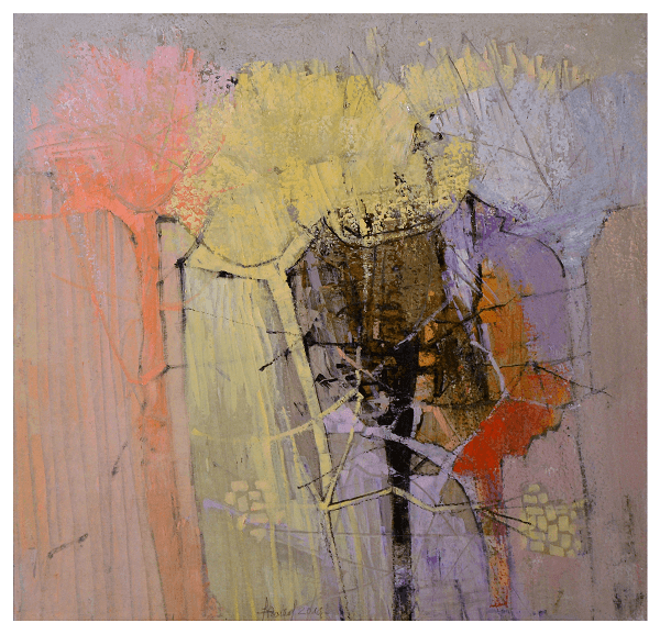 Colore é Vita di Sergio Giromel originale rappresentazione cromatica di alberi astratti con tecnica olio su tavola. Misure 75x75 cm Anno 2014 Cod.061